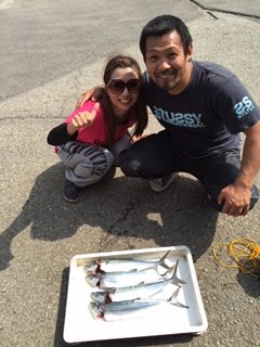 魚種...サゴシ、4匹、50センチ前後。イワシ、50匹、15センチ前後。